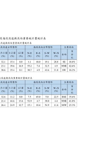 名稱 單位 蒐集率 平均值 流速 流向 <0.5 節 0.5~1 節 1~2 節 >2 節 N~E E~S S~W W~N 去向 分