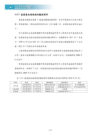 表 1-12 嘉義臺南海域海流觀測資料蒐集概況表(統計時間至 2018 年 12 月)