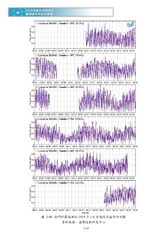 圖 2-44 金門料羅港測站 2018 年 1-6 月海流流速時序列圖 資料來源:港灣技術研究中心 2-44