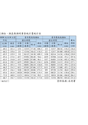註:HHW(較高高潮位 higher high water)、LLW(較低低潮位 lower low water) 資料來源:水利署