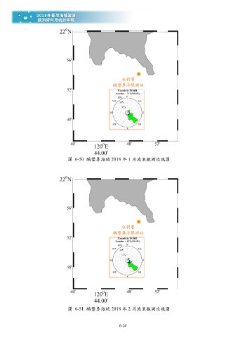 水利署 鵝鑾鼻浮標測站 圖 6-50 鵝鑾鼻海域 2018 年 1 月波浪觀測玫瑰圖 水利署 鵝鑾鼻浮標測站 圖 6-51 鵝鑾鼻海域 2018 年 2 月波浪觀測玫瑰圖 6-26