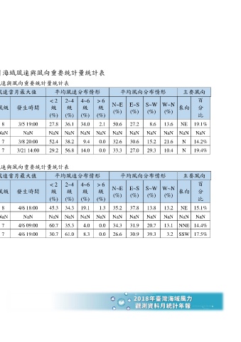 Page 195 - 2018年臺灣海域風力觀測資料月統計年報