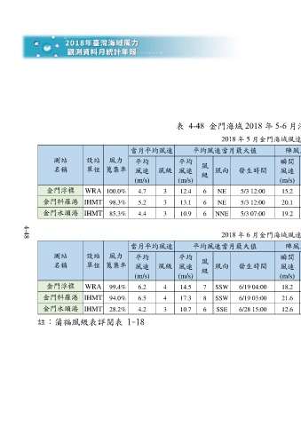 Page 284 - 2018年臺灣海域風力觀測資料月統計年報