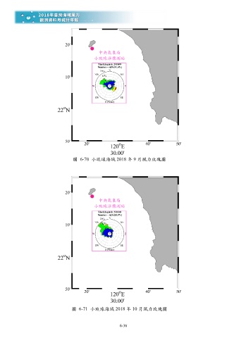 中央氣象局 小琉球浮標測站 圖 6-70 小琉球海域 2018 年 9 月風力玫瑰圖 中央氣象局 小琉球浮標測站 圖 6-71 小琉球海域 2018 年 10 月風力玫瑰圖 6-36