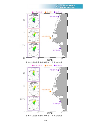 中央氣象局 水利署 港研中心 布袋港測站 七股浮標測站 安平港測站 圖 6-96 嘉義臺南海域 2018 年 11 月風力玫瑰圖 中央氣象局 水利署 港研中心 布袋港測站 七股浮標測站 安平港測站 圖 6-97 嘉義臺南海域 2018 年 12 月風力玫瑰圖 6-49
