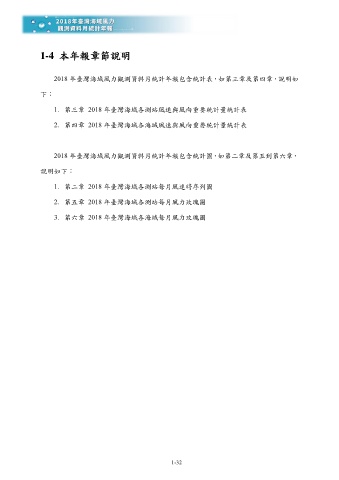 2018 年臺灣海域風力觀測資料月統計年報包含統計表,如第三章及第四章 , 說明如