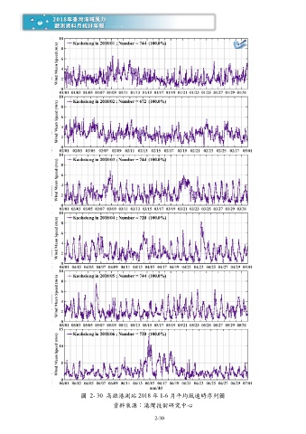 圖 2- 30 高雄港測站 2018 年 1-6 月平均風速時序列圖 資料來源:港灣技術研究中心 2-30