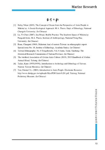 [4] Taiwan Ethnography: No. 8 Tongzhouzhi, Vol. 8 Amis, Yami. Taichung: The