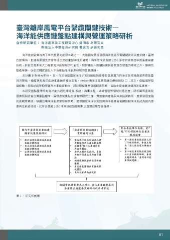 技術,針對台灣未來大力推動海洋能發展的可能性,除持續投入關鍵技術與經營適合發電的場域之外,建構完