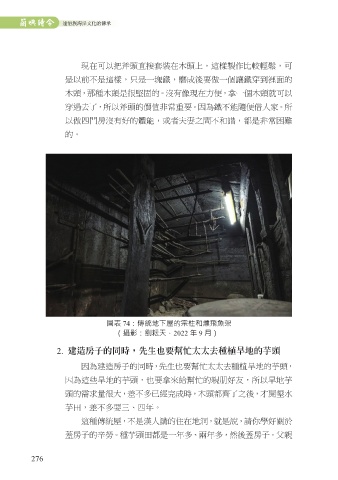 圖表 74:傳統地下屋的宗柱和燻飛魚架 也要殺一條豬、旱芋頭、地瓜。當時養的都是迷你豬,那個只有長