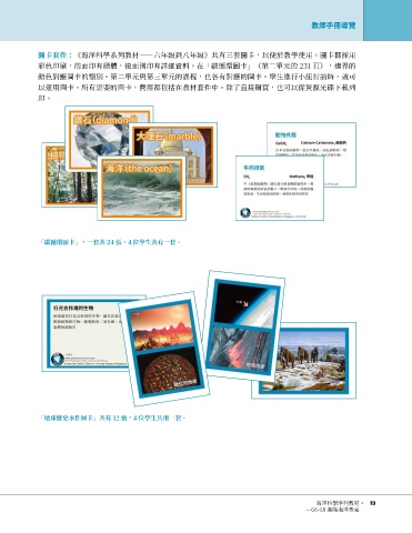 圖卡套件:《海洋科學系列教材——六年級到八年級》共有三套圖卡,以便於教學使用。圖卡都採用