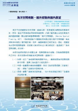 劃。聯合國及歐盟積極推動「海洋空間規劃」(Marine Spatial Planning, MSP),