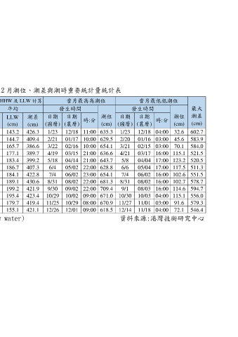 註:HHW(較高高潮位 higher high water)、LLW(較低低潮位 lower low water) 資料來源:港灣技術研究中心