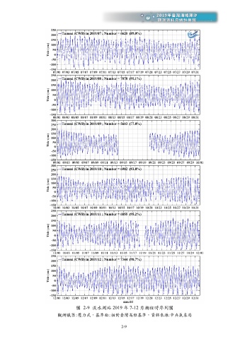 圖 2-9 淡水測站 2019 年 7-12 月潮位時序列圖 觀測儀器:壓力式,基準面:相對臺灣高程基準,資料來源:中央氣象局 2-9