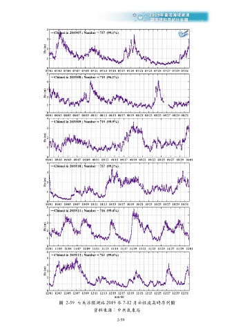 圖 2-59 七美浮標測站 2019 年 7-12 月示性波高時序列圖 資料來源:中央氣象局 2-59