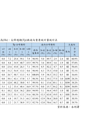 年/月 月平均 Hs Tp 波向 Tp Tp <0.5 0.5~ 1.5~ >3 <6 6~8 8~10 >10 波向 N~E E~S S~W W~N