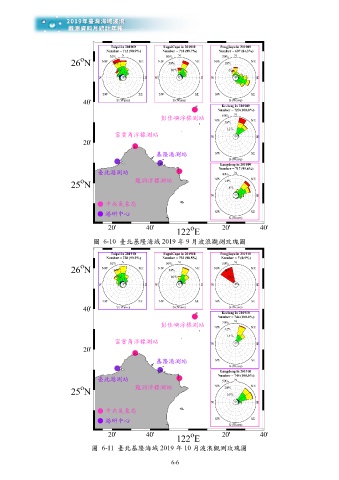彭佳嶼浮標測站 富貴角浮標測站 基隆港測站 臺北港測站 龍洞浮標測站 中央氣象局 港研中心 圖 6-10 臺北基隆海域 2019 年 9 月波浪觀測玫瑰圖 彭佳嶼浮標測站 富貴角浮標測站 基隆港測站 臺北港測站 龍洞浮標測站 中央氣象局 港研中心 圖 6-11 臺北基隆海域 2019 年 10 月波浪觀測玫瑰圖 6-6