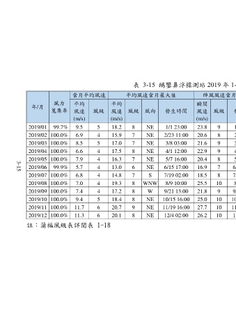 Page 148 - 2019年臺灣海域風力觀測資料月統計年報