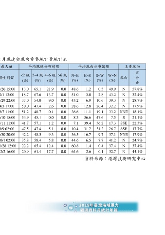 Page 161 - 2019年臺灣海域風力觀測資料月統計年報