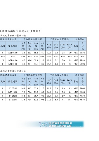 Page 275 - 2019年臺灣海域風力觀測資料月統計年報
